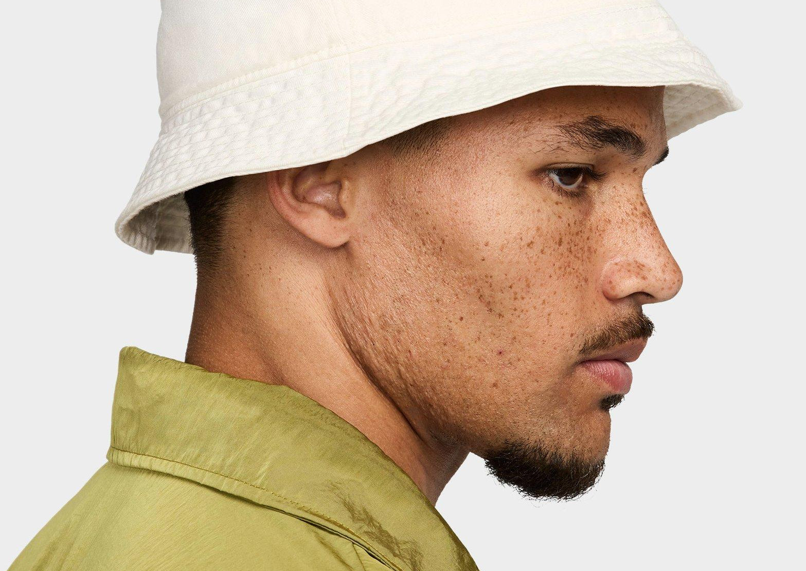 หมวก Nike Apex Bucket ดีไซน์ความลึกปานกลาง ผลิตจากคอตตอนเนื้อนุ่ม โดดเด่นด้วยการปักโลโก้ Futura การซักจะทำให้รู้สึกนุ่มนวลและให้ลุควินเทจ
