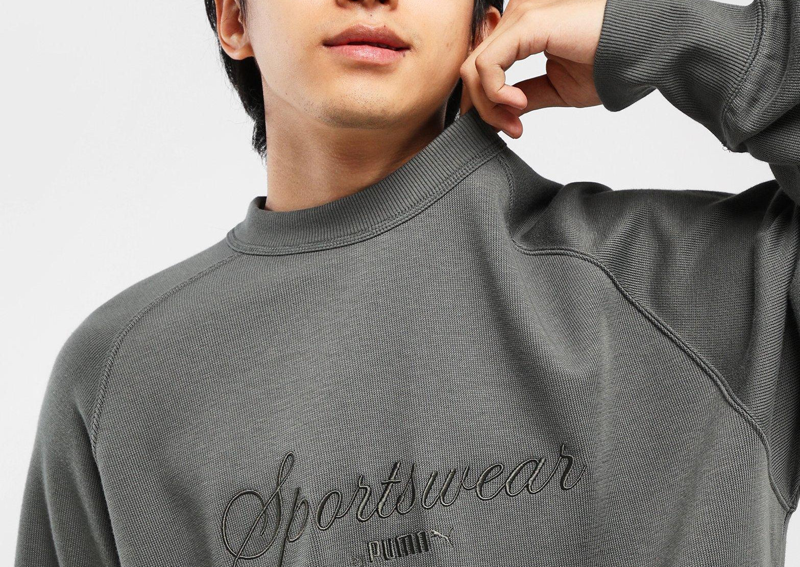 เสื้อแขนยาวคอกลมทรงหลวมตัวนี้โดดเด่นด้วยงานปัก Sportswear by PUMA ที่หน้าอกและตัดเย็บจากผ้า French Rib ที่ให้ลุคและสัมผัสที่มีเท็กซ์เจอร์