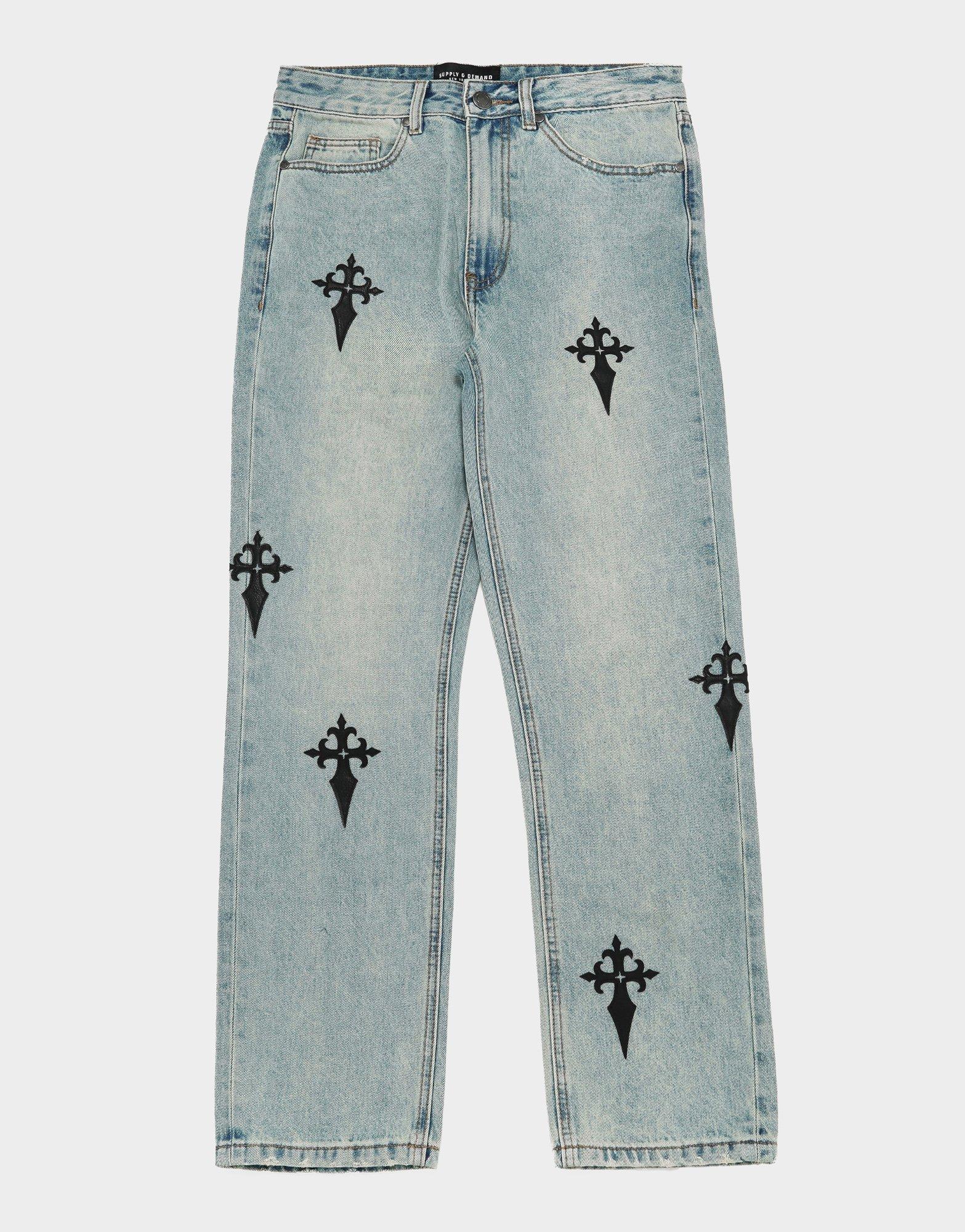 ลายไขว้สีดำอันโดดเด่นที่ปกคลุมตัวกางเกงยีนส์ทั้งหมด เพิ่มสัมผัสที่เฉียบขาดและกล้าหาญให้กับชุดของคุณ ลายไขว้ตัดกันอย่างสดใสกับผ้าเดนิมซีด ทำให้กางเกงตัวนี้เป็นไอเทมอเนกประสงค์สำหรับทุกโอกาส ไม่ว่าจะเป็นการไปเที่ยวเล่นสบายๆ หรือออกไปเที่ยวกลางคืน