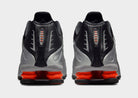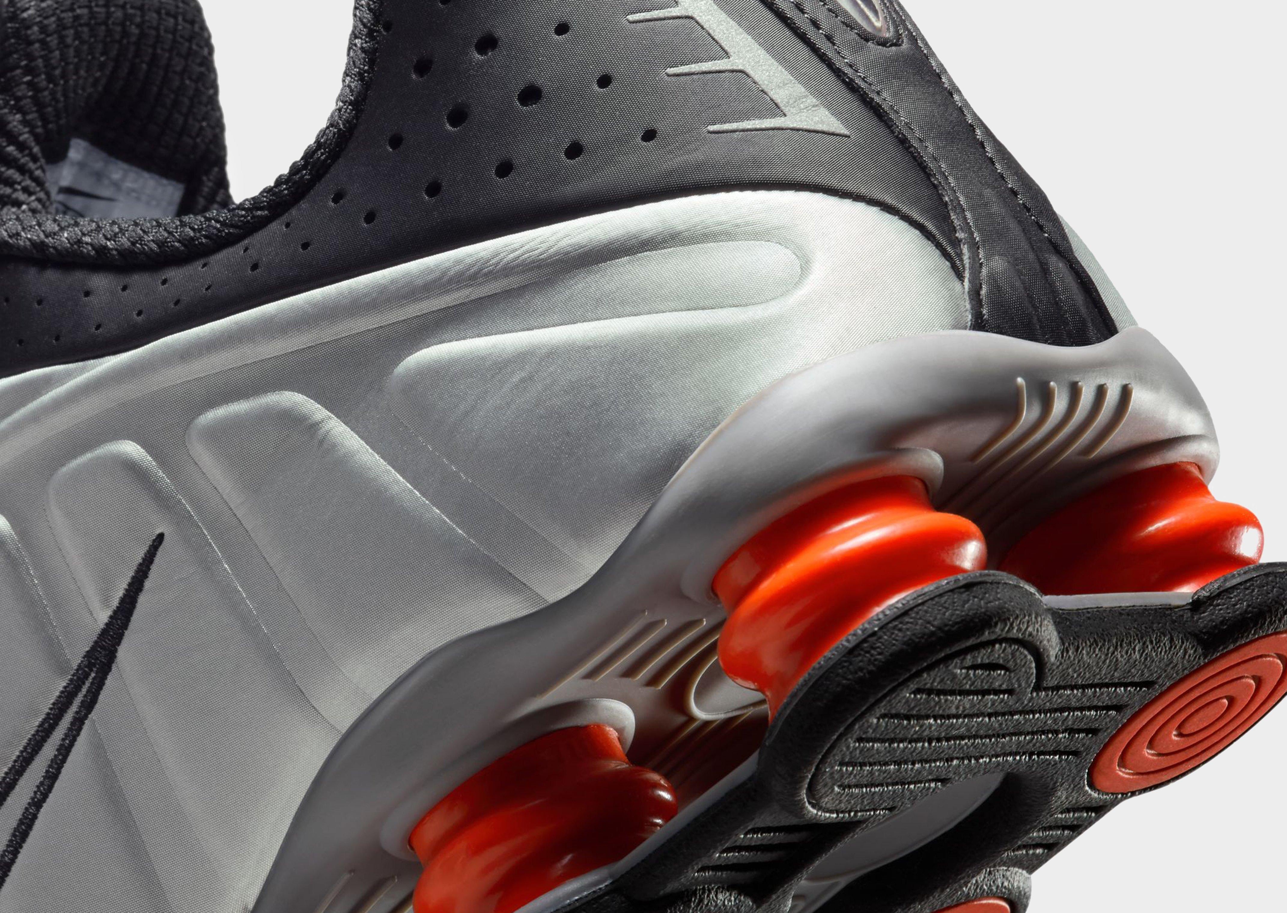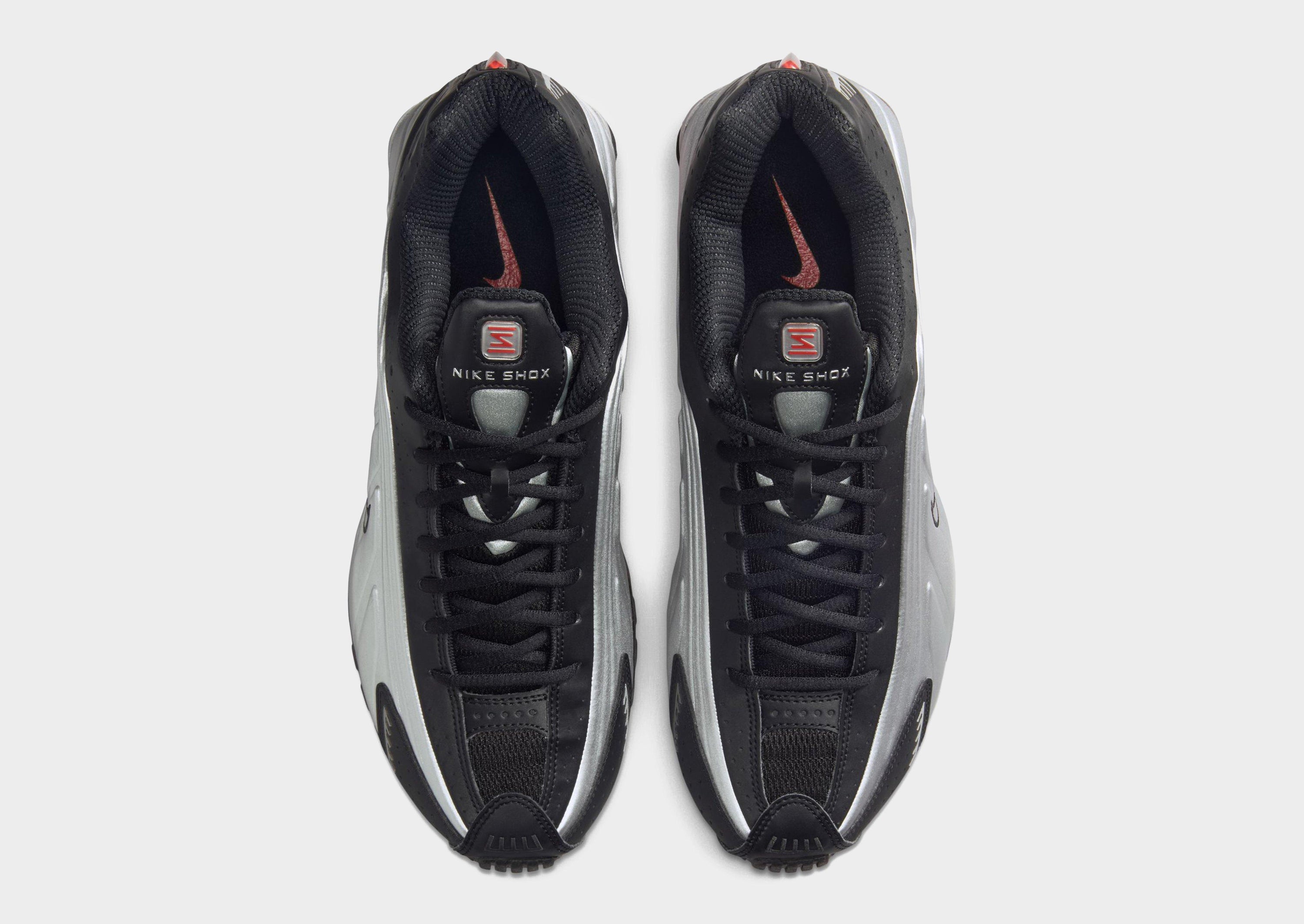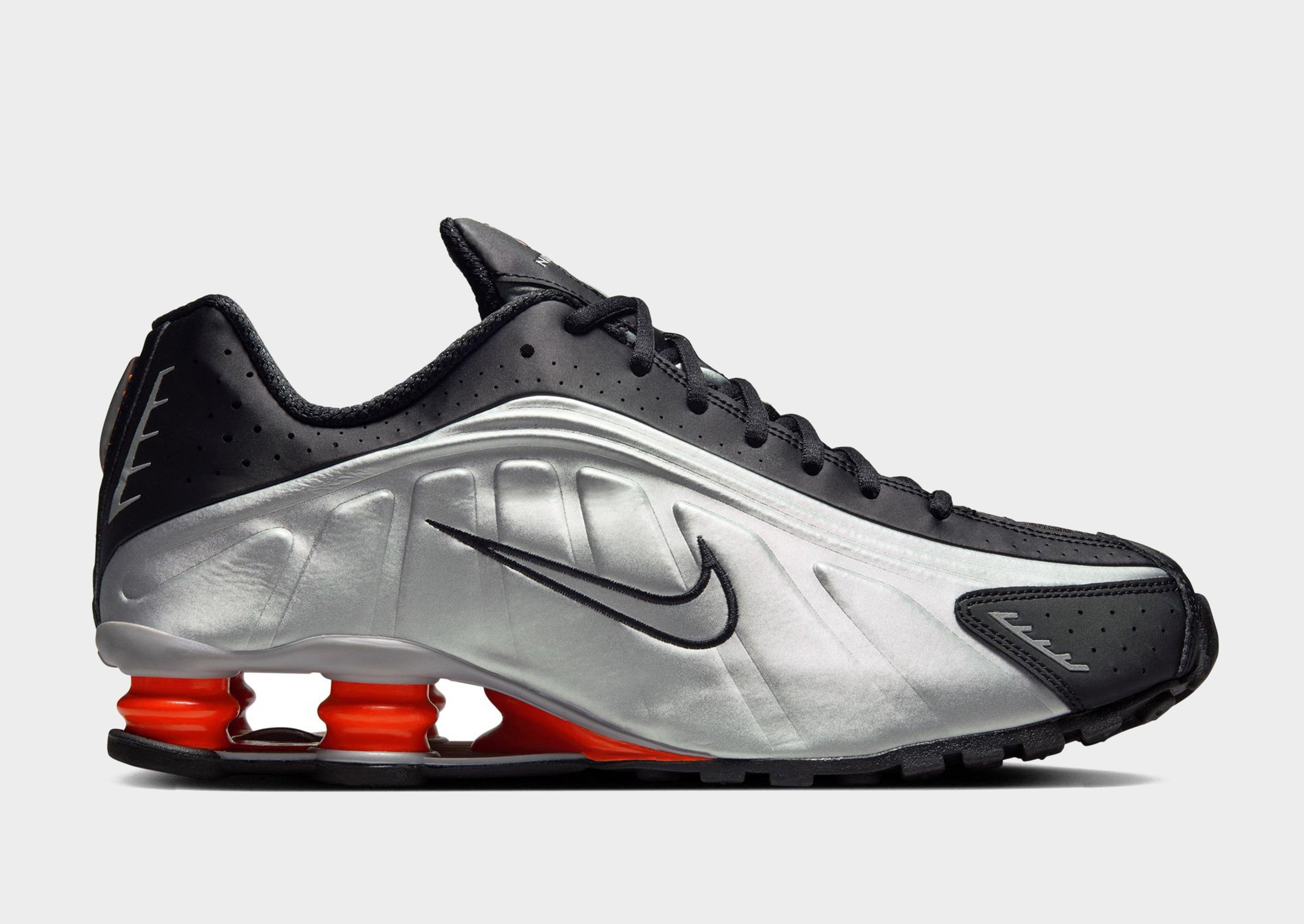 Shox R4 เปิดตัวอย่างอาจหาญในปี 2000 โดยได้ทลายขนบของสนีกเกอร์แบบดั้งเดิมด้วยลุคสุดล้ำ รุ่นนี้ผสานส่วนบนจากวัสดุสังเคราะห์เรียบลื่นดุจไหมเข้ากับลายคลื่นไหลลื่นและรูที่เจาะด้วยเลเซอร์ ซึ่งนำจุดเด่นของสไตล์มาจากชุดอวกาศและอุปกรณ์ของนักบินอวกาศ เสา 4 ต้นที่บีบอัดอยู่ยกส้นขึ้นเพื่อให้โครงสร้างที่มั่นคงและการดีดตัวที่แท้จริง รุ่นสุดโฉบเฉี่ยวนี้หุ้มตกแต่งด้วยหนังสังเคราะห์สีขาวเรียบลื่นแซมด้วยสี Metallic Silver และ Max Orange เป็นการยกระดับ R4 ไปสู่อนาคตอีกขั้น นี่คือความขบถจากดีไซน์