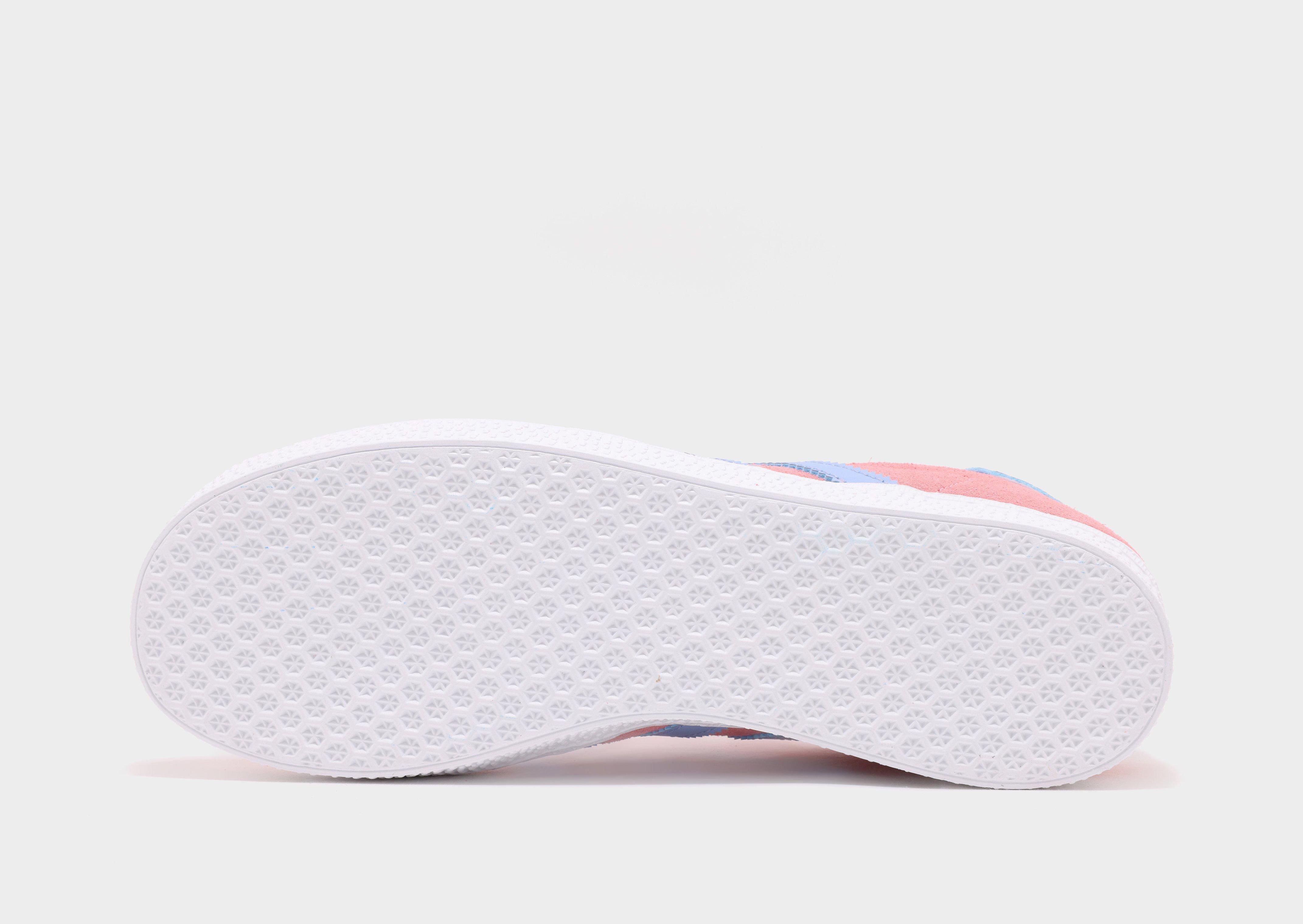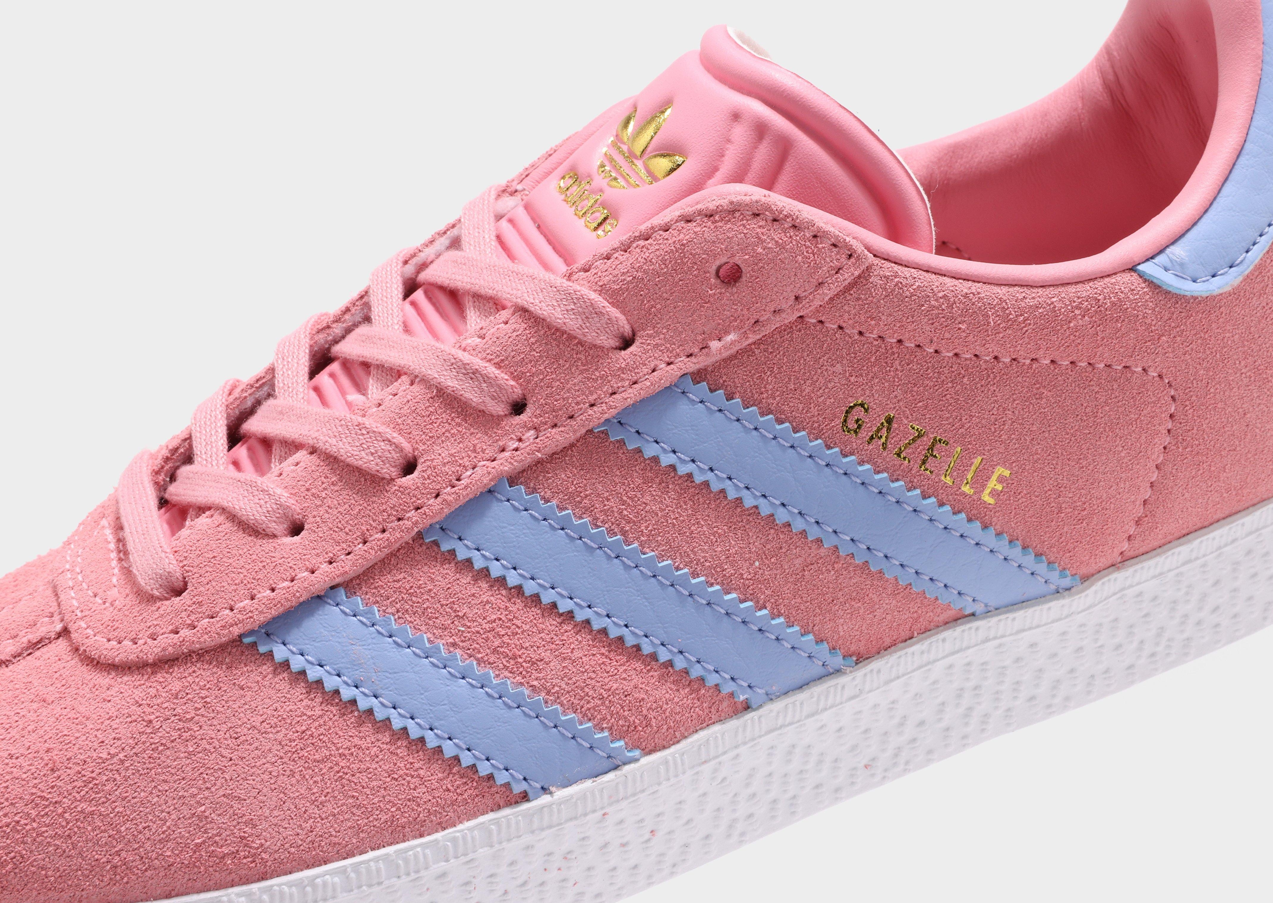 รองเท้า Gazelle อันเป็นเอกลักษณ์คู่นี้โดดเด่นด้วยการตกแต่งด้วยตราสัญลักษณ์ Trefoil บนลิ้นรองเท้าและส้นรองเท้า คุณสมบัติที่เป็นเอกลักษณ์ เช่น ส่วนบนที่ทำจากหนังกลับเนื้อนุ่ม และลิ้นรองเท้าที่ขึ้นรูป ช่วยให้สวมใส่สบายและคลาสสิกในเวลาเดียวกัน รองเท้าคู่นี้ผลิตด้วยวัสดุรีไซเคิลอย่างน้อย 20% การนำวัสดุที่ผลิตขึ้นแล้วมาใช้ซ้ำช่วยลดขยะและการพึ่งพาทรัพยากรที่มีอยู่อย่างจำกัด