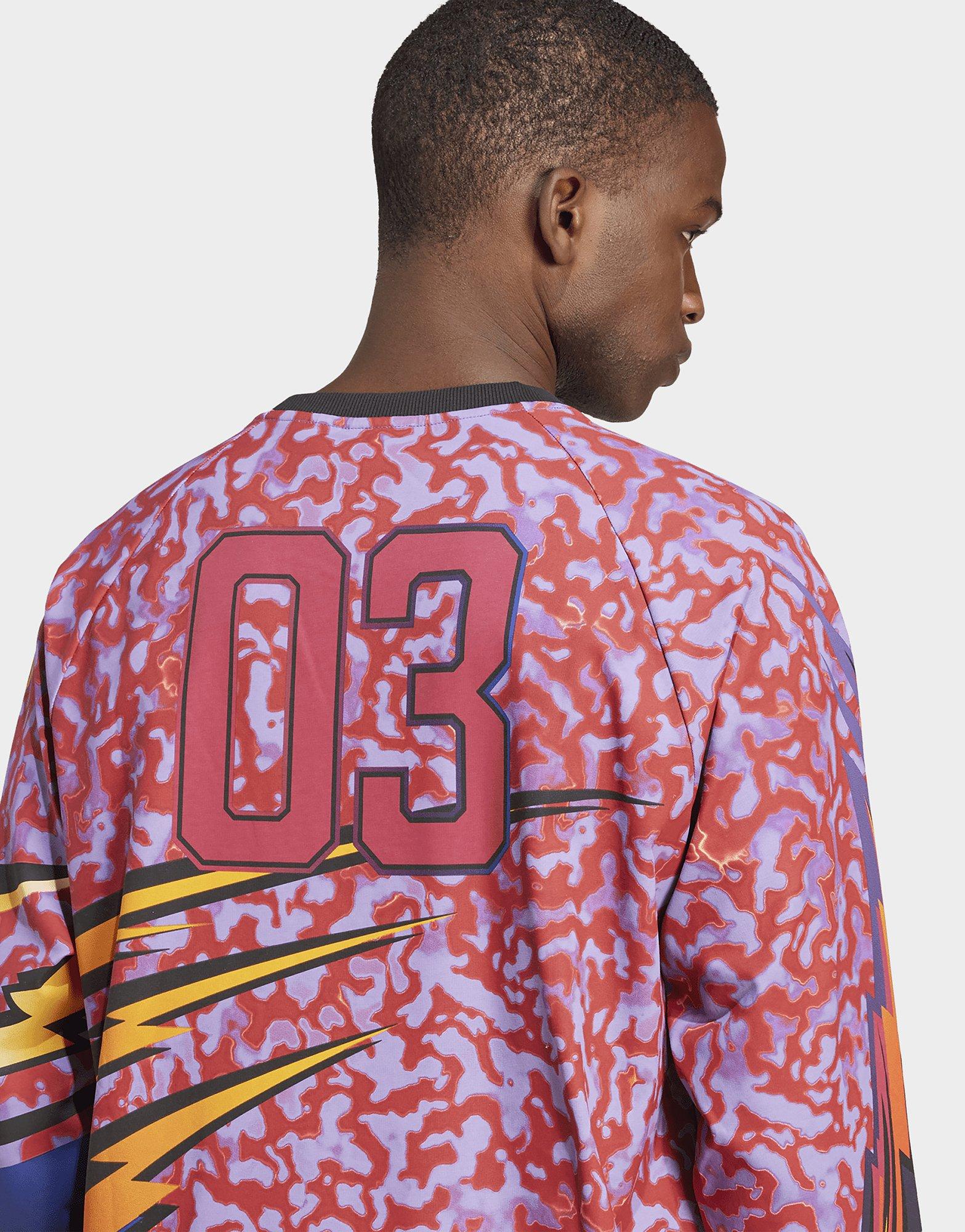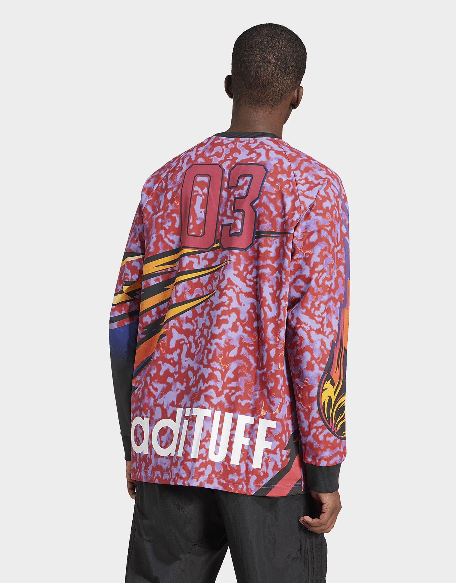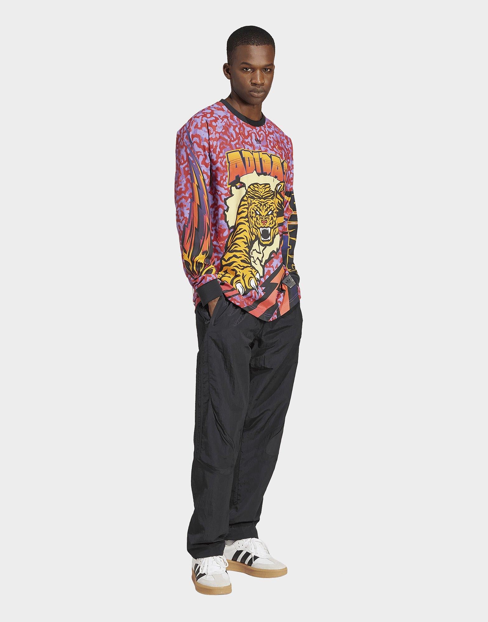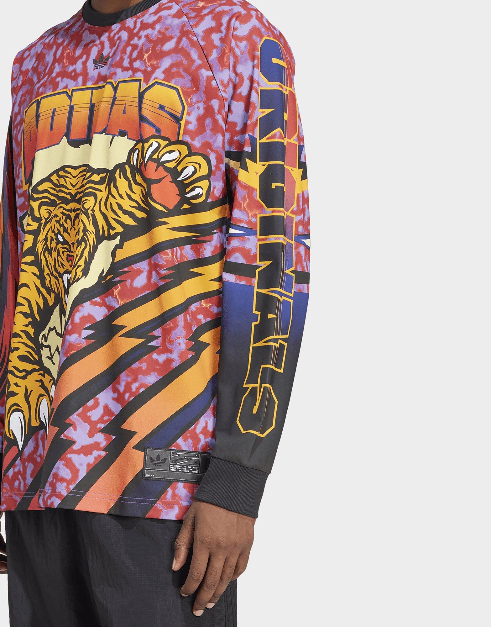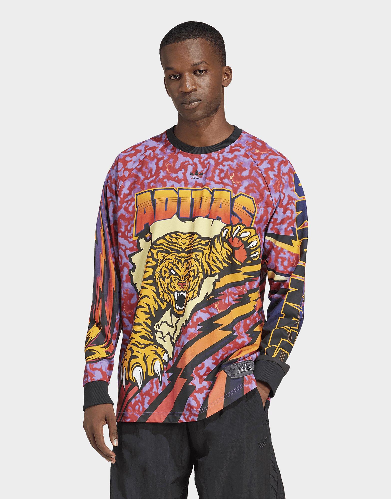 สิ่งที่คืบคลานออกมาจากลายพิมพ์โค้งวนและกราฟิกที่เต็มเปี่ยมด้วยพลังบนเสื้อยืดแขนยาวอาดิดาสตัวนี้คือลายเสือในท่าทางดุดันน่าเกรงขาม สายฟ้า เปลวไฟ และตัวอักษรที่ได้แรงบันดาลใจจากกีฬาอเมริกันและกราฟิกย้อนยุคทำให้เสื้อตัวนี้มีกลิ่นอายคลาสสิกที่ไม่เคยตกยุคและดูโฉบเฉี่ยวในเวลาเดียวกัน ทั้งยังช่วยสะท้อนตัวตนออกมาอย่างชัดเจน