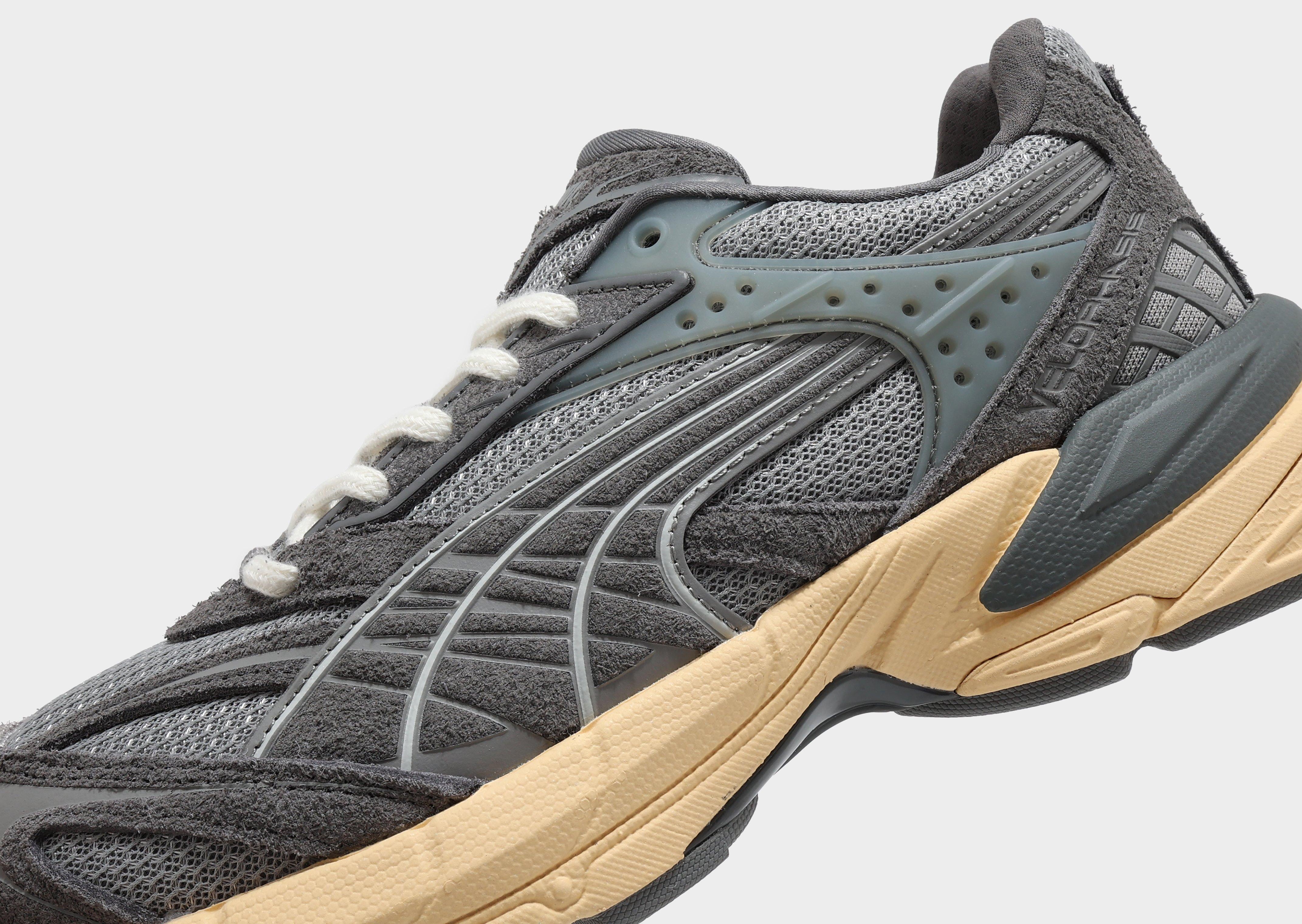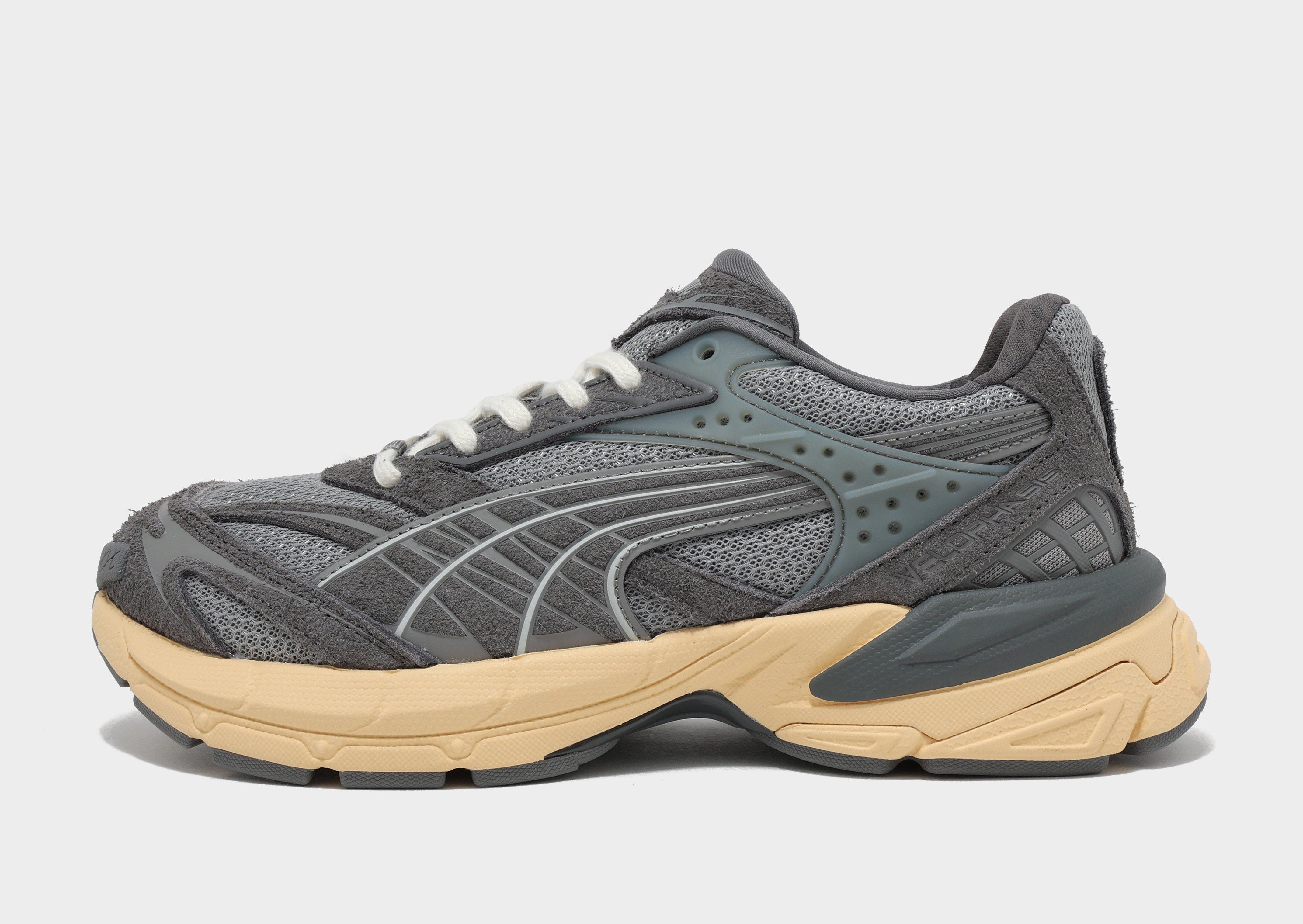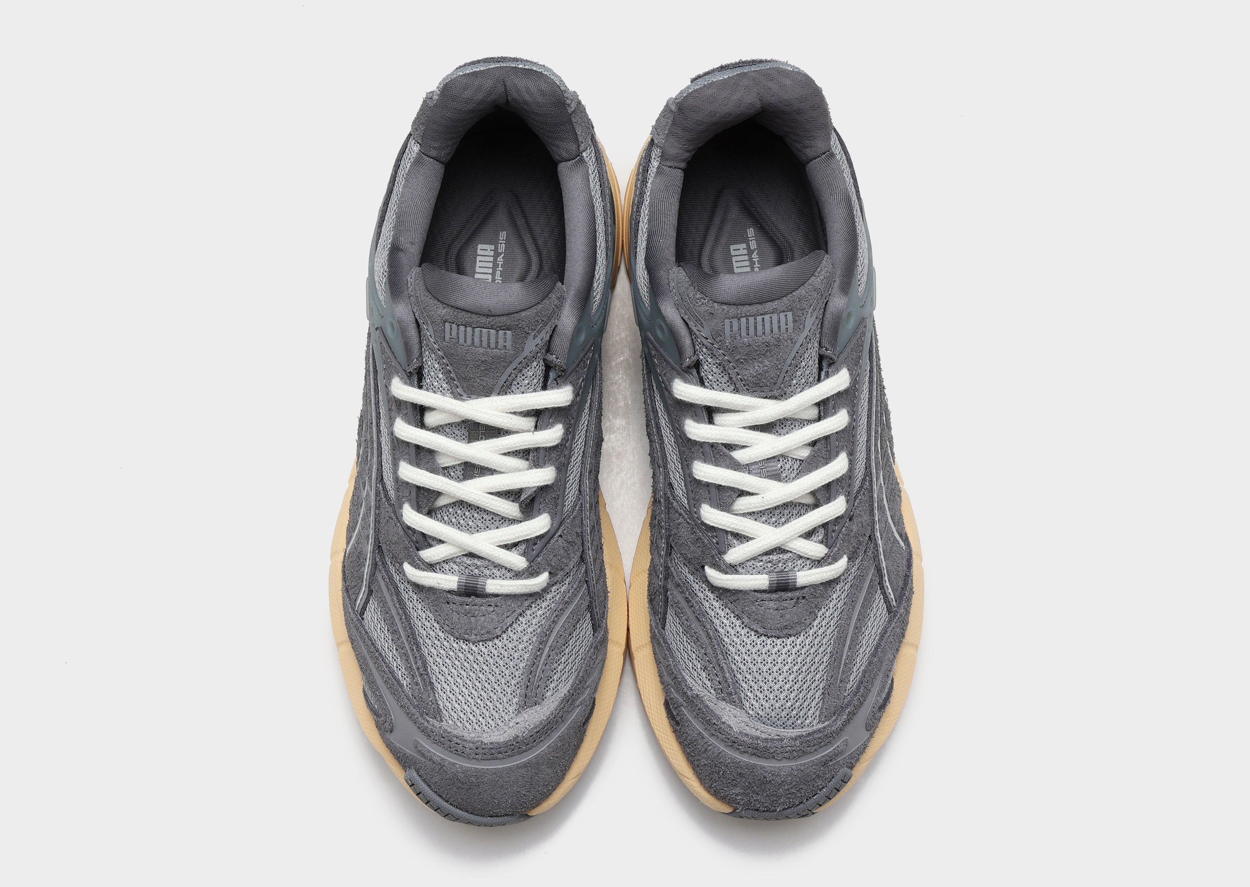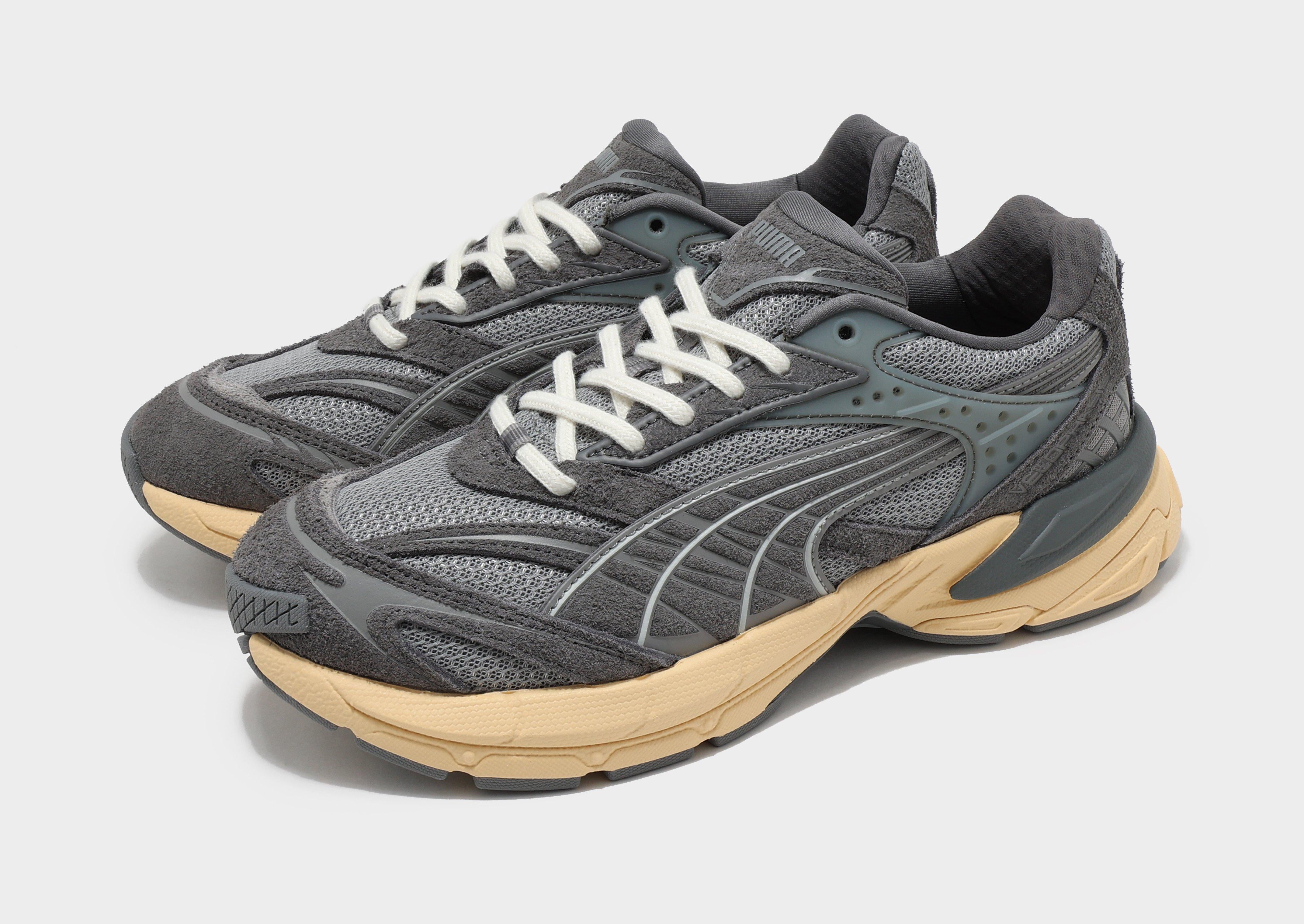 Velophasis ถูกสร้างขึ้นโดยการผสมผสานการอ้างอิงจากสุนทรียภาพของการออกแบบที่คล้ายคลึงกัน เพื่อสร้างสิ่งใหม่และแท้จริง ทรงรองเท้าไฮบริดในยุค 2000 ที่ได้รับแรงบันดาลใจจากกลุ่มรองเท้าวิ่งอันเป็นมรดกของ PUMA Velophasis SD โดดเด่นด้วยอัปเปอร์ผ้าตาข่ายพร้อมโอเวอร์เลย์หนังกลับและลายเส้นกราฟิกแบบแกะลาย ส่วนหุ้มชั้นนอกแบบโปร่งแสงช่วยยึดรูปทรงของรองเท้าได้อย่างสมบูรณ์แบบและเน้นลุคให้โดดเด่น