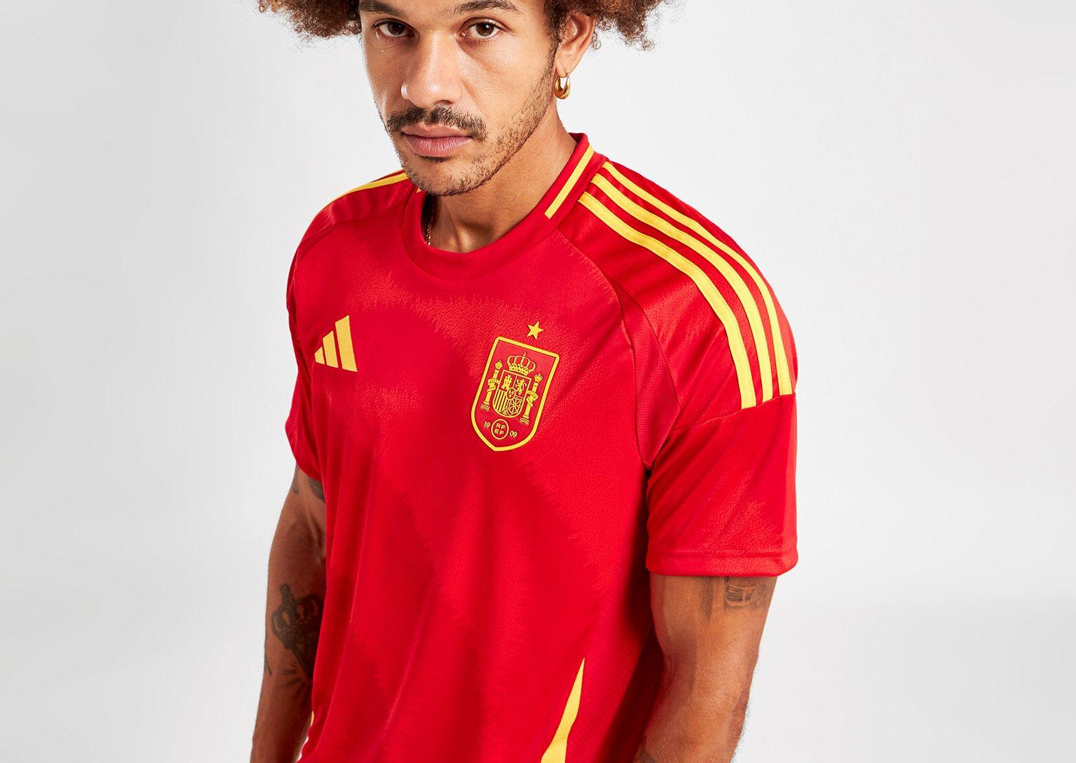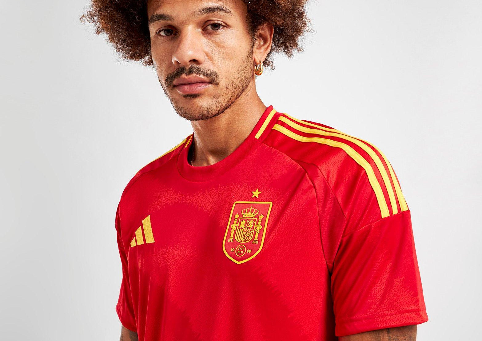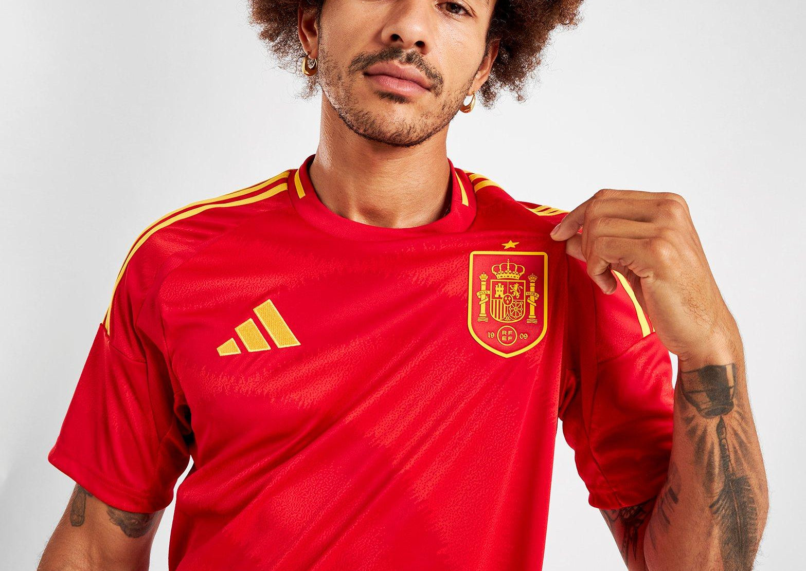 รากฐานฟุตบอลของพวกเขาหยั่งรากลึก ได้รับแรงบันดาลใจจากความงามของดอกไม้ประจำชาติของสเปนและการเคลื่อนไหวเป็นจังหวะของคลื่นทะเล เสื้อแข่งทีมเหย้าของ Adidas Spain ตัวนี้จึงโดดเด่นด้วยกราฟิกโทนสีที่สะดุดตา สร้างขึ้นเพื่อความสบายและความภาคภูมิใจของผู้สนับสนุน โดยร่วมมือกับ AEROREADY ที่จัดการความชื้นด้วยตราแบบทอและสัญลักษณ์ดอกคาร์เนชั่น