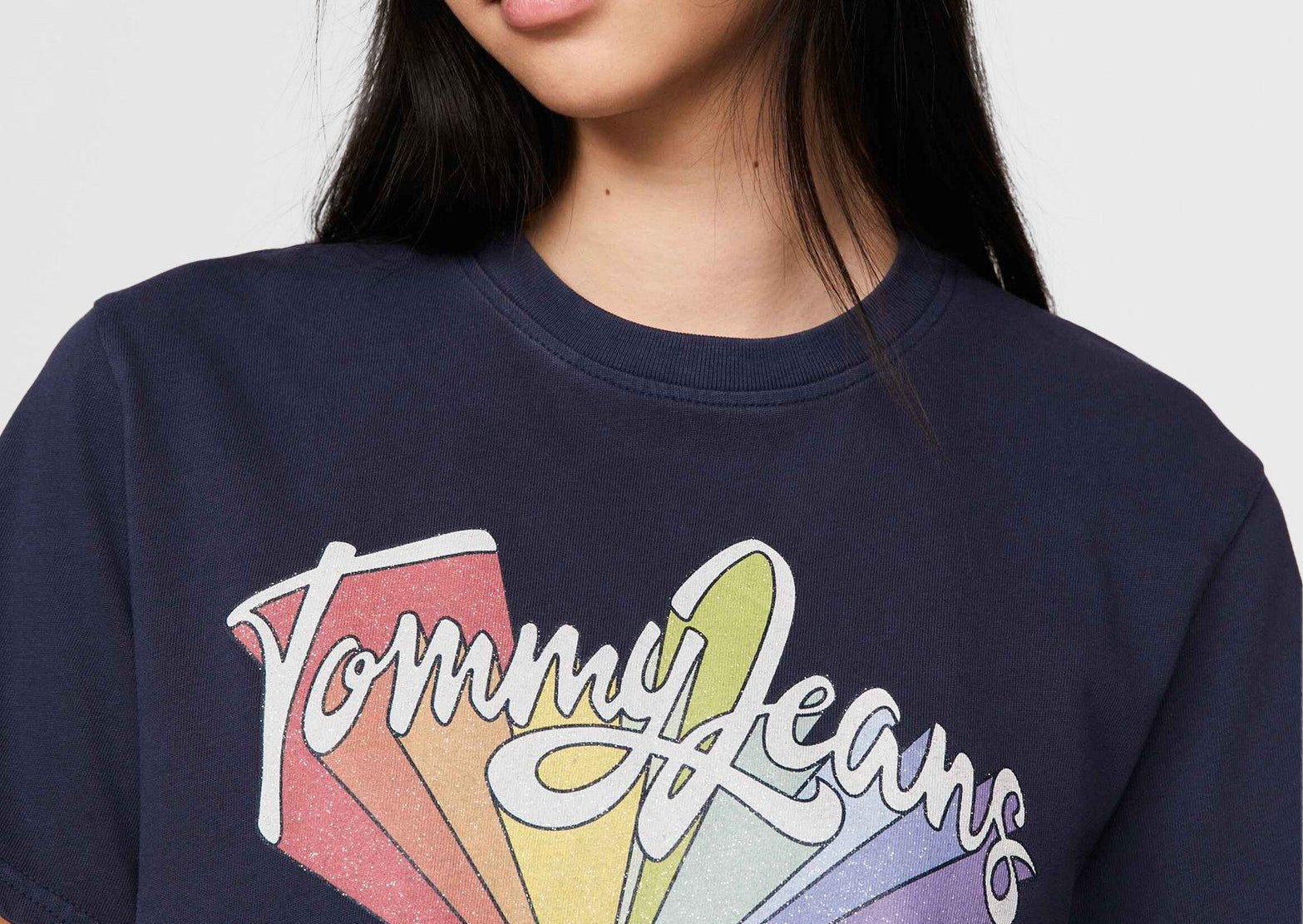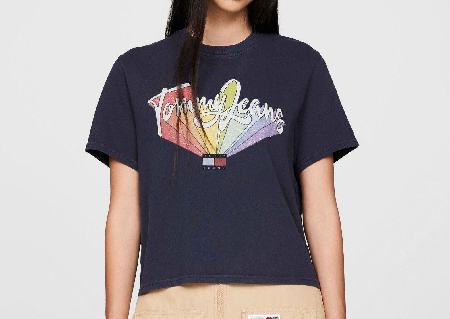 Tommy Hilfiger เสื้อยืดผู้หญิง Boxy Rainbow Flag