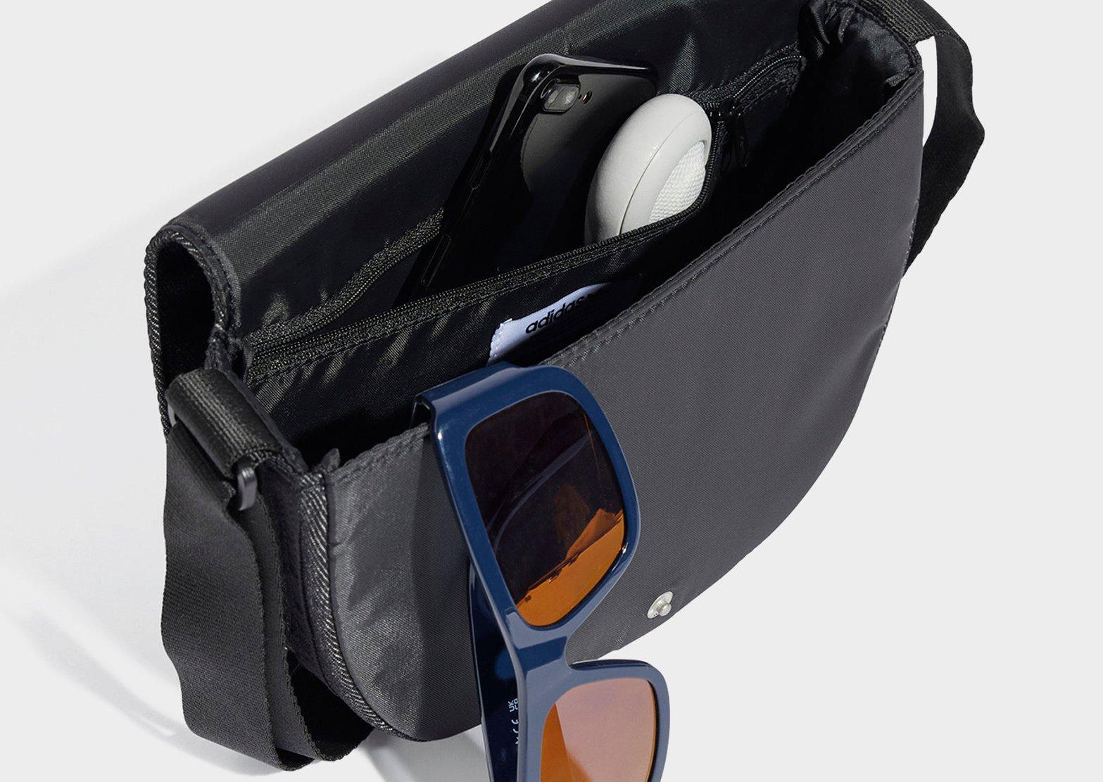 กระเป๋าสะพายข้างขนาดเล็กของ Adidas ใบนี้เพิ่มความเก๋แบบเรโทรให้กับลุคของคุณ ผลิตจากผ้าเดนิมสีดำฟอก แต่งดีเทลด้วยแถบ 3-Stripes ที่แผงด้านข้างและตราสัญลักษณ์ Trefoil โลหะ รูปทรงเพรียวบางกะทัดรัดปิดด้านหน้าด้วยการติดกระดุมแบบเรียบง่าย