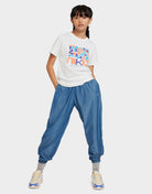 กางเกงขายาวทรงกว้างตัวนี้รังสรรค์มาเพื่อการเคลื่อนไหวทุกรูปแบบ โดยเพิ่มพื้นที่ตลอดช่วงขาเพื่อให้บิดตัว กระโดด และย่ำเท้าได้ตามสไตล์ไปพร้อมกับเพลย์ลิสต์โปรด ผ้าทอเนื้อเรียบเหลือบสีเพิ่มความเฉิดฉายให้กับลุคและช่วยให้โดดเด่นที่สุดในทุกที่ที่ไป นอกจากนี้ยังมีซิปตลอดแนวด้านข้างซึ่งเผยให้เห็นแผงตาข่ายสำหรับเพิ่มการระบายอากาศ เสน่ห์ และความสนุก