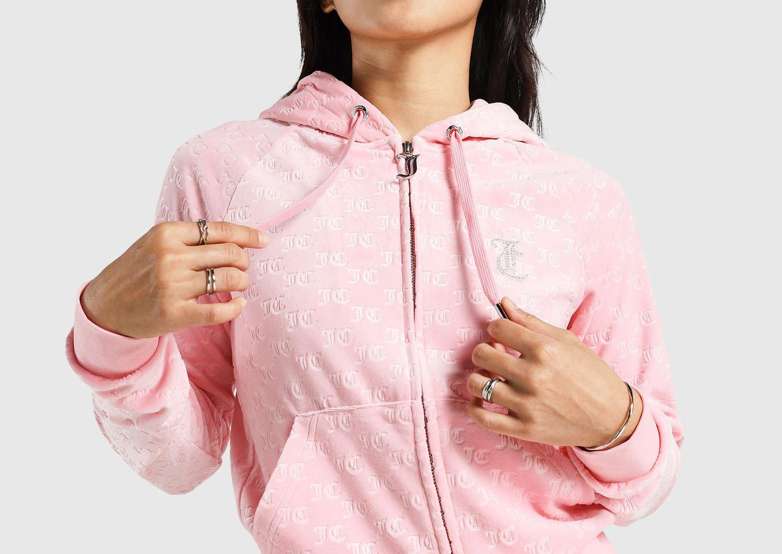 เสื้อฮู้ดดี้ซิปเต็มตัว Juicy Couture กลับมาอีกครั้งกับกลิ่นอายของยุค Y2K อันเป็นเอกลักษณ์ ด้วยเนื้อผ้ากำมะหยี่เนื้อนุ่ม ทรงครอป และรายละเอียดประดับคริสตัลอันเป็นเอกลักษณ์ มาพร้อมซิปเต็มตัว ฮู้ด และโลโก้ Juicy สีเงินแวววาว ผสมผสานความสบาย ความหรูหรา และสไตล์ลำลองในชีวิตประจำวันได้อย่างลงตัว