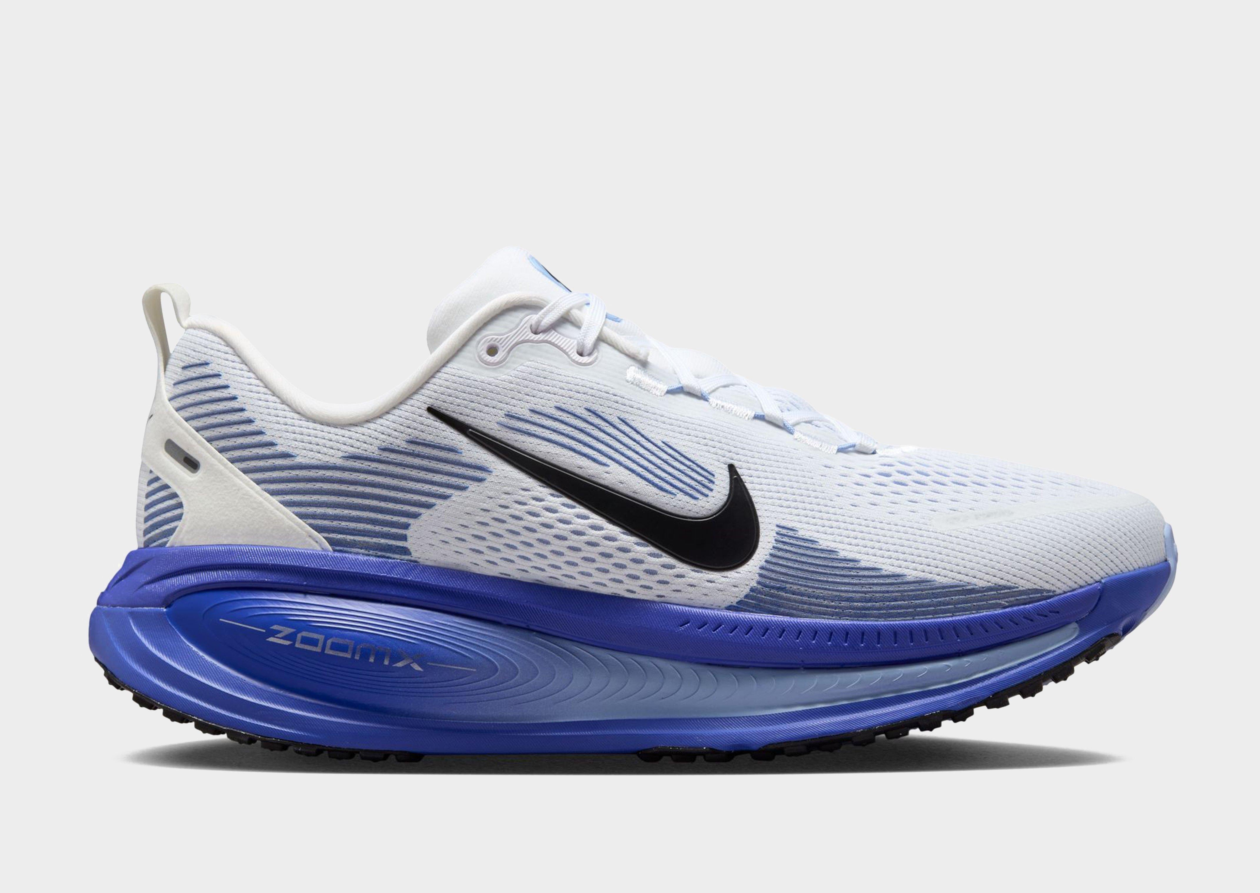 โฟมซ้อน 2 ชั้นให้ที่สุดของความนุ่มและการลดแรงกระแทกได้มากที่สุดของเรา ระบบลดแรงกระแทกขั้นสุดของ Vomero จะให้ความสบายในทุกย่างก้าวเพื่อการวิ่งในทุกวัน รองเท้าที่นุ่มและลดแรงกระแทกมากที่สุดของเรามีโฟม ZoomX น้ำหนักเบาที่ซ้อนทับอยู่บนโฟม ReactX ที่ตอบสนองได้ดีในพื้นรองเท้าชั้นกลาง นอกจากนี้ยังมีรูปแบบการยึดเกาะที่ออกแบบขึ้นใหม่เพื่อให้ถ่ายเทน้ำหนักจากส้นสู่ปลายเท้าได้อย่างลื่นไหล ส่วนบนผลิตจากตาข่ายที่ออกแบบเชิงโครงสร้างเพื่อการระบายอากาศในสัมผัสนุ่มนวล พื้นรองเท้าชั้นกลางหนาแน่น 2 ระดับของเราเป็นโฟม ZoomX ที่ซ้อนทับโฟม ReactX ซึ่งตอบสนองได้ดีกว่าเทคโนโลยี React รุ่นก่อนถึง 13% เพื่อให้ความสบายในทุกย่างก้าว เราจัดวางปุ่มไว้รอบพื้นรองเท้าชั้นนอกเพื่อเสริมความคล่องตัวและช่วยให้ถ่ายเทน้ำหนักจากส้นสู่ปลายเท้าได้ลื่นไหลยิ่งขึ้น ชั้นบุและลิ้นรองเท้านุ่มพิเศษให้สัมผัสแนบกระชับใส่สบาย พื้นรองเท้าโฟมชั้นกลางแบบใหม่เป็นโฟม ZoomX ระดับพรีเมียมที่ซ้อนบนโฟม ReactX เพื่อเสริมความสบายที่ลดแรงกระแทกได้ดี รายละเอียดดีไซน์สะท้อนแสง