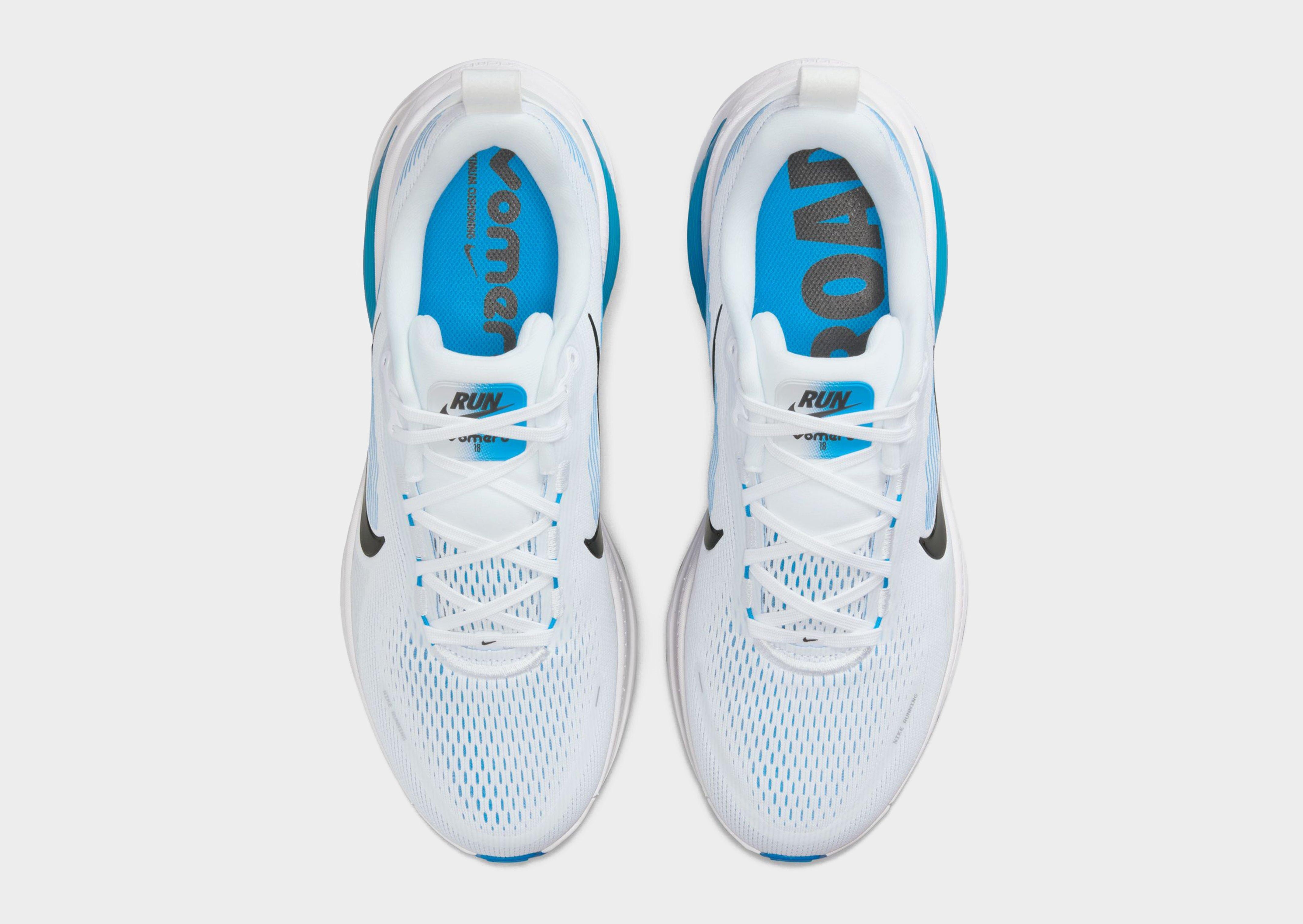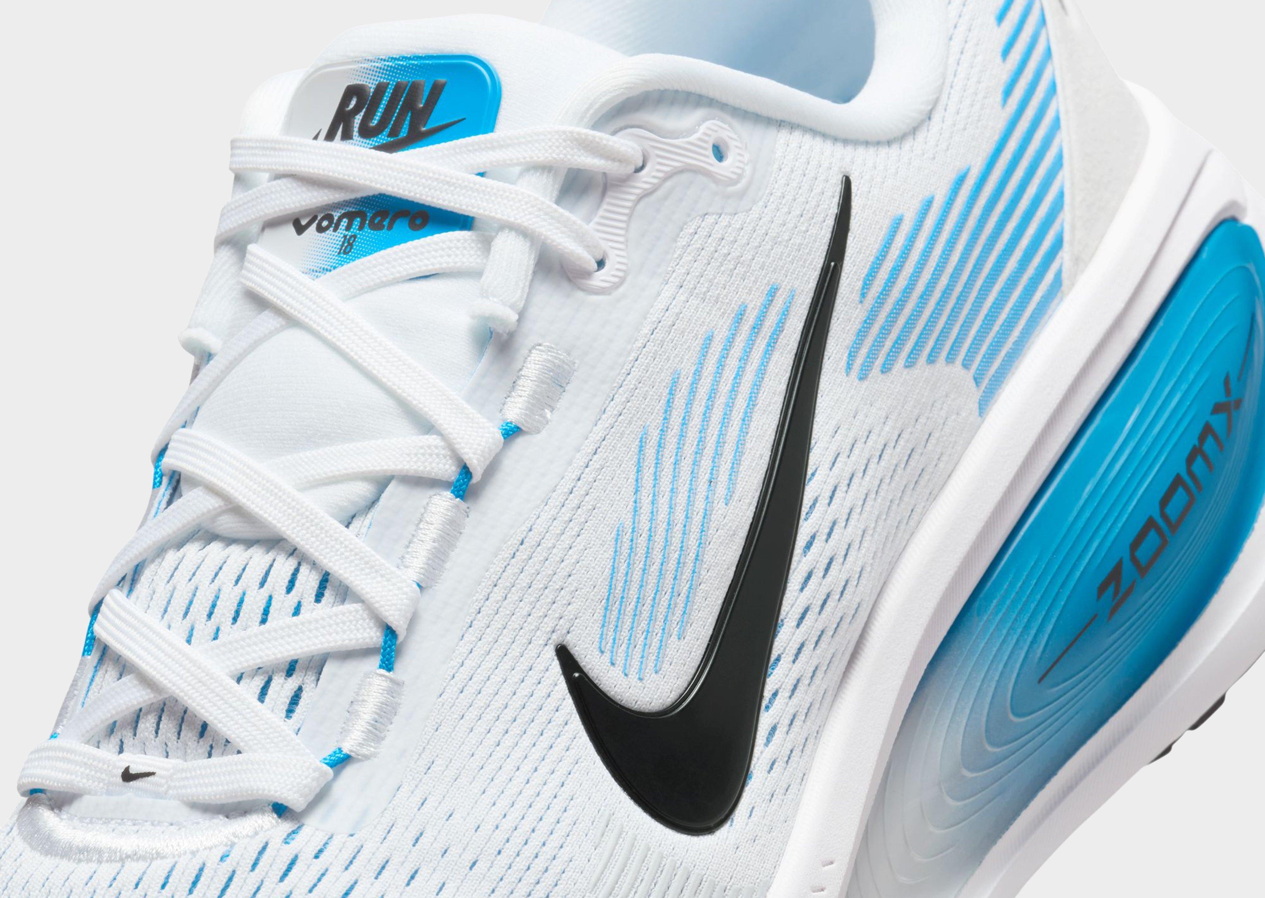 โฟมซ้อน 2 ชั้นให้ที่สุดของความนุ่มและการลดแรงกระแทกได้มากที่สุดของเรา ระบบลดแรงกระแทกขั้นสุดของ Vomero จะให้ความสบายในทุกย่างก้าวเพื่อการวิ่งในทุกวัน รองเท้าที่นุ่มและลดแรงกระแทกมากที่สุดของเรามีโฟม ZoomX น้ำหนักเบาที่ซ้อนทับอยู่บนโฟม ReactX ที่ตอบสนองได้ดีในพื้นรองเท้าชั้นกลาง นอกจากนี้ยังมีรูปแบบการยึดเกาะที่ออกแบบขึ้นใหม่เพื่อให้ถ่ายเทน้ำหนักจากส้นสู่ปลายเท้าได้อย่างลื่นไหล ส่วนบนผลิตจากตาข่ายที่ออกแบบเชิงโครงสร้างเพื่อการระบายอากาศในสัมผัสนุ่มนวล พื้นรองเท้าชั้นกลางหนาแน่น 2 ระดับของเราเป็นโฟม ZoomX ที่ซ้อนทับโฟม ReactX ซึ่งตอบสนองได้ดีกว่าเทคโนโลยี React รุ่นก่อนถึง 13% เพื่อให้ความสบายในทุกย่างก้าว เราจัดวางปุ่มไว้รอบพื้นรองเท้าชั้นนอกเพื่อเสริมความคล่องตัวและช่วยให้ถ่ายเทน้ำหนักจากส้นสู่ปลายเท้าได้ลื่นไหลยิ่งขึ้น ชั้นบุและลิ้นรองเท้านุ่มพิเศษให้สัมผัสแนบกระชับใส่สบาย พื้นรองเท้าโฟมชั้นกลางแบบใหม่เป็นโฟม ZoomX ระดับพรีเมียมที่ซ้อนบนโฟม ReactX เพื่อเสริมความสบายที่ลดแรงกระแทกได้ดี รายละเอียดดีไซน์สะท้อนแสง