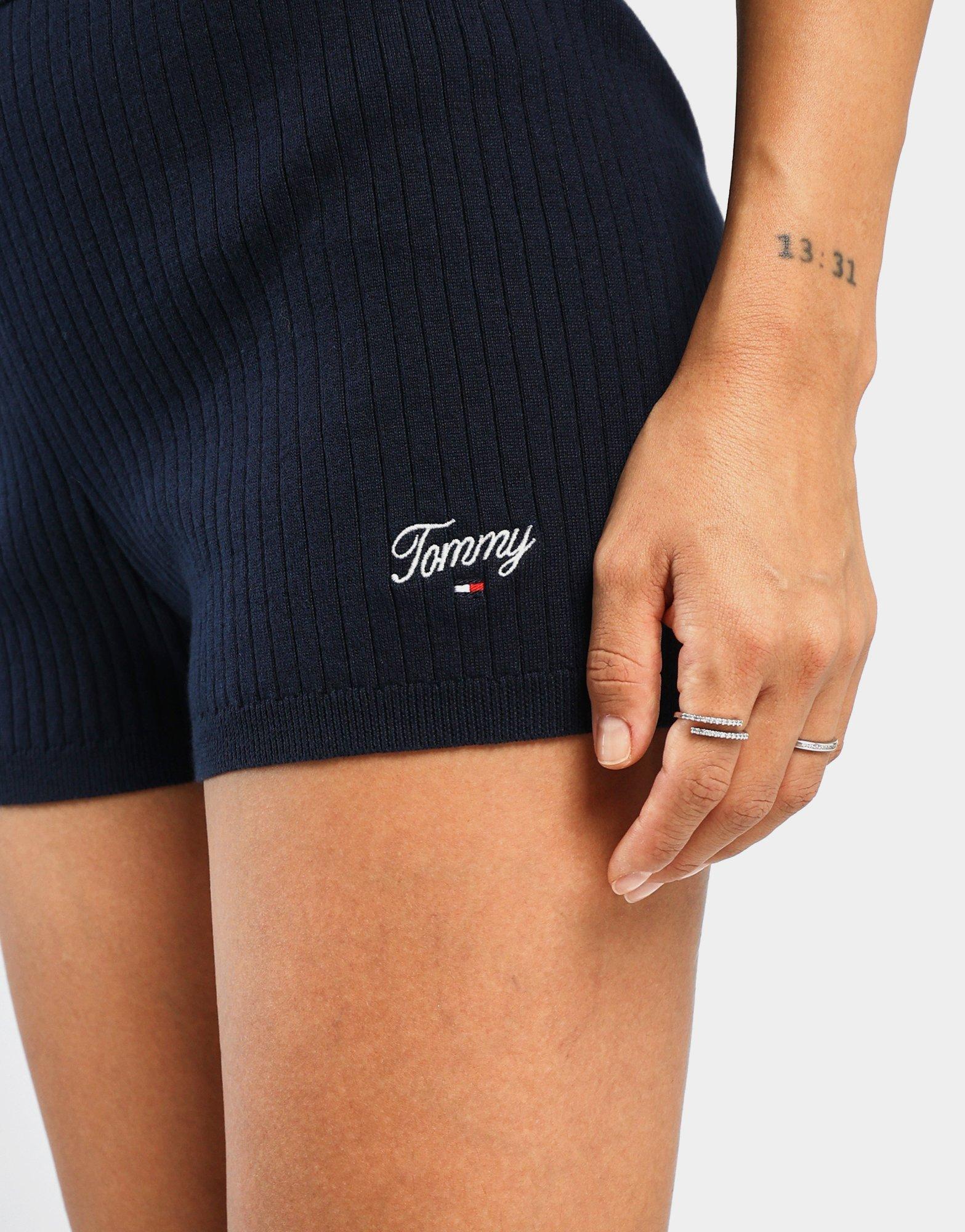 Tommy Hilfiger กางเกงขาสั้นผู้หญิง Rib-Knit Script Logo