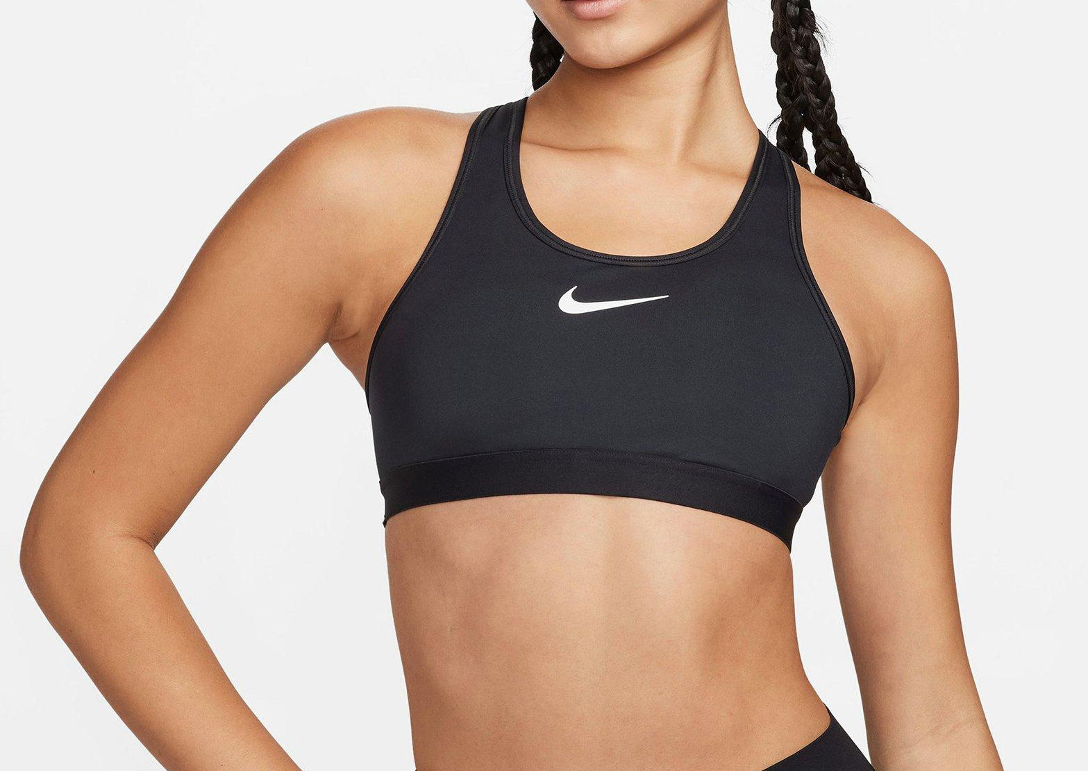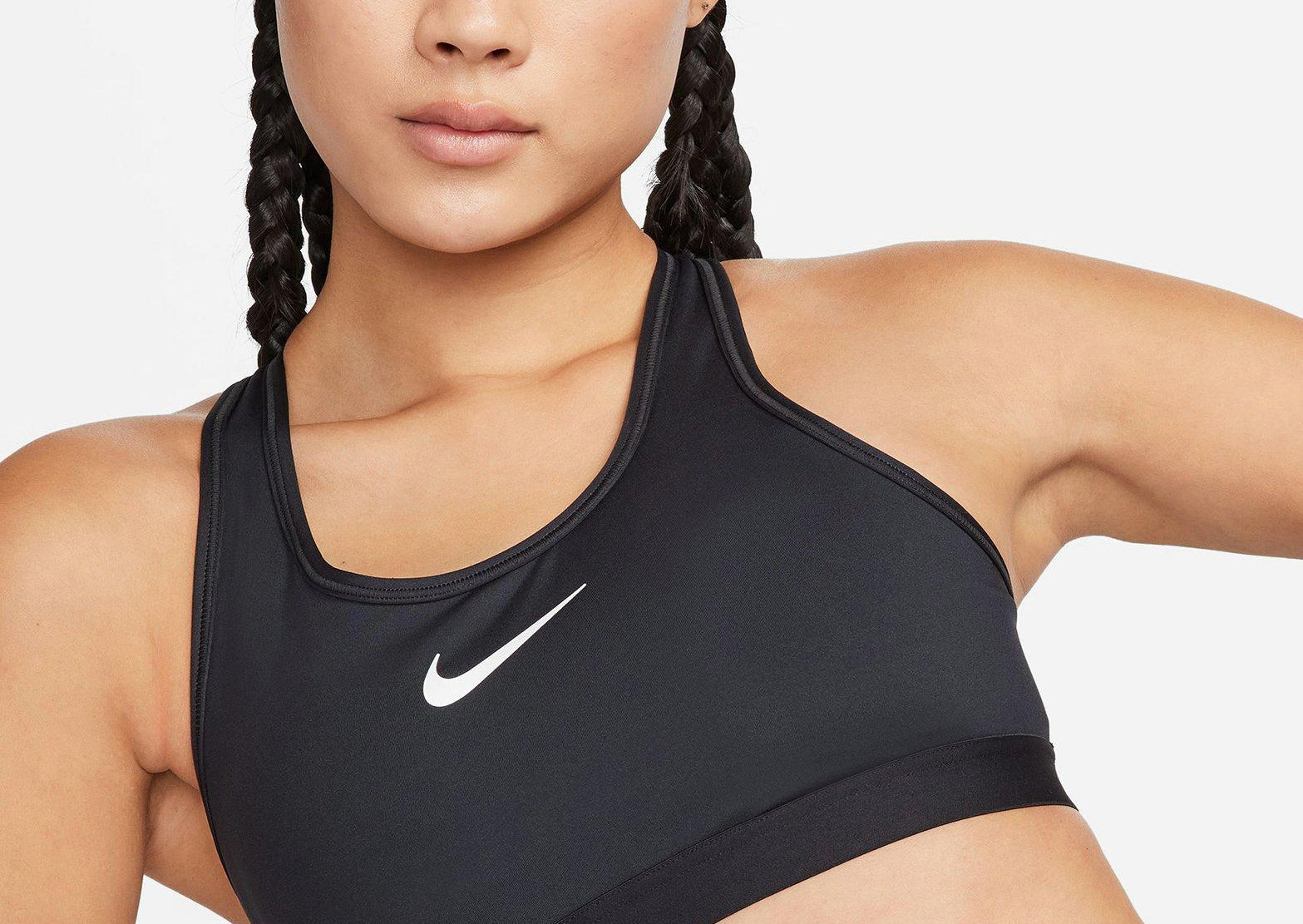 - สปอร์ตบรา Swoosh High Support เป็นเพื่อนคู่ใจในการออกกำลังกายของคุณมายาวนาน ให้ความรู้สึกเรียบหรูและมีโครงสร้างเหมือนแผ่นรองแบบเย็บ